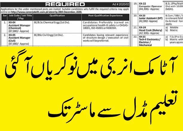 آٹامک انرجی کی طرف سے نئی نوکریاں آ گئی
