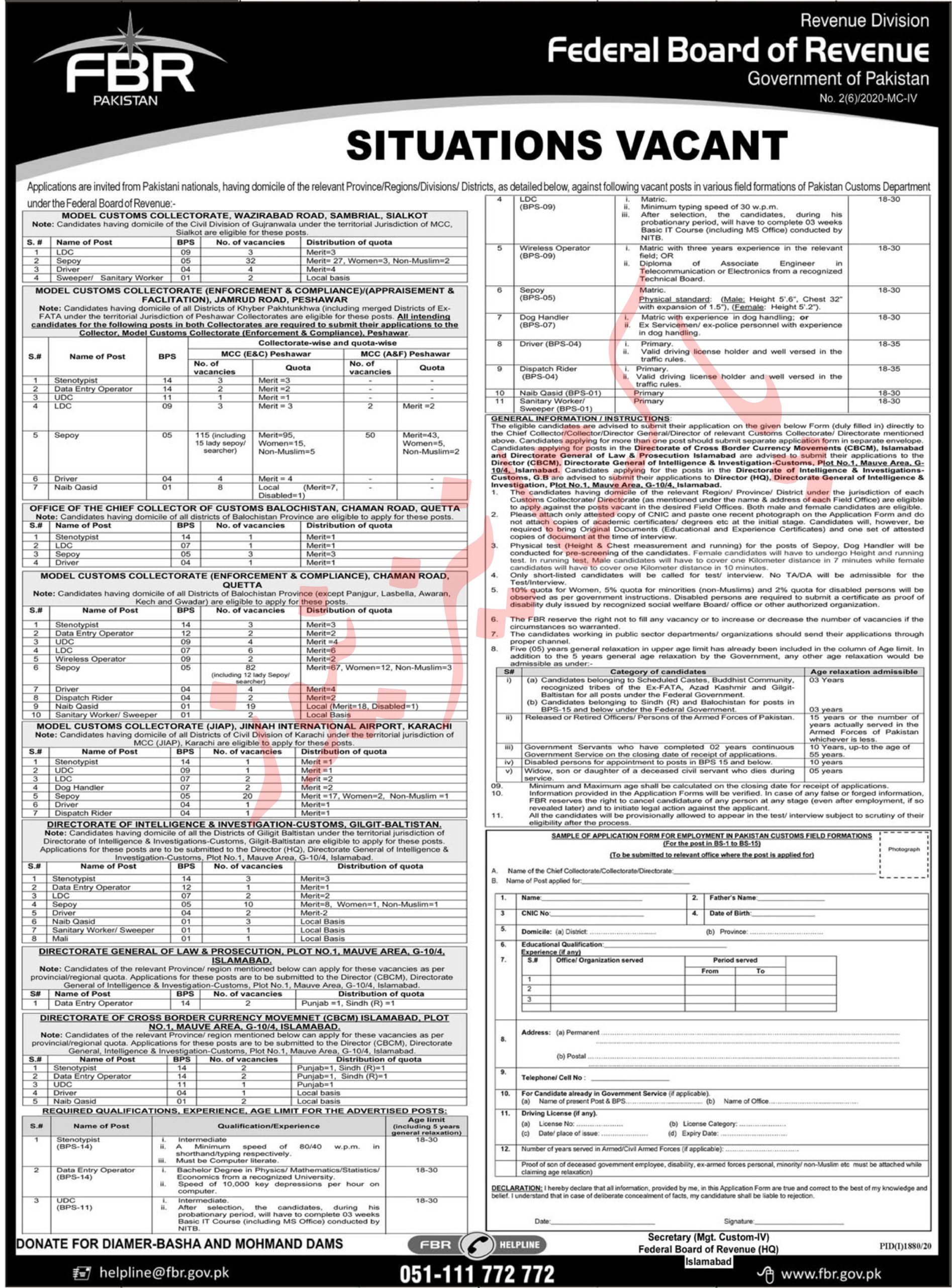فیڈرل بورڈ آف ریونیو میں نوکریاں آ چکی ہیں وہ تمام پاکستانی جن کے پاس ڈومیسل موجود ہے وہ ان نوکریوں کے لئے اپلائی کر سکتے ہیں