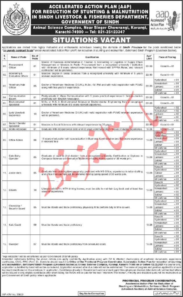 لائیوسٹاک ڈپارٹمنٹ سندھ کی طرف سے 72 نوکریوں کا اعلان کیا گیا ہے صوبہ سندھ کے رہائشی جن کے پاس ڈومیسل موجود ہے وہ ان نوکریوں کے لئے اپلائی کر سکتے ہیں