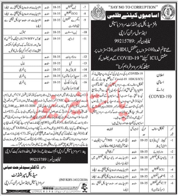 میڈکل سریڈنٹ سروسس ہسپتال میں کرونا کے مریضوں کی کئیر کےلئے ایمرجنسی نوکریاں