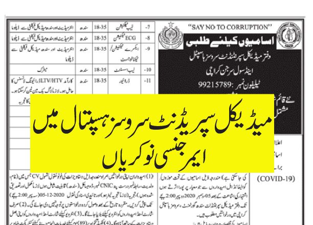 میڈکل سریڈنٹ سروسس ہسپتال میں کرونا کے مریضوں کی کئیر کےلئے ایمرجنسی نوکریاں