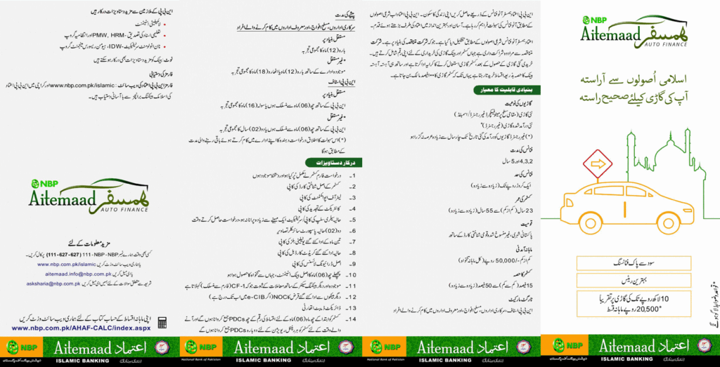 نشنل بنک سے اسلامی طریقے کے مطابق گاڑی خریدنے کےلئے قرضہ حاصل کریں