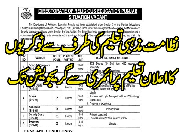 نظامت مذہبی تعلیم کی طرف سے زبردست سرکاری نوکریوں کا اعلان ہو چکا ہے
