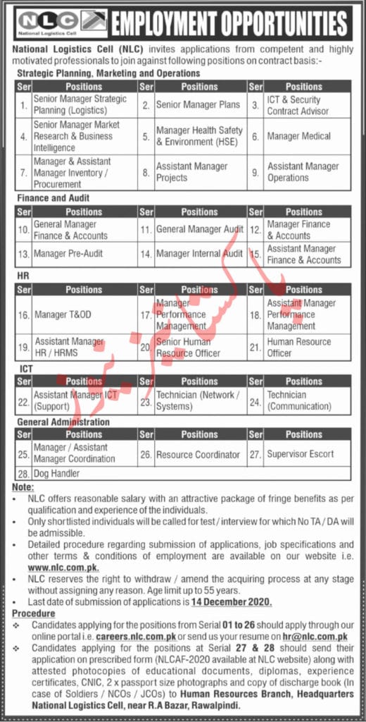 نیشنل لاجسٹک سیل کو اپنے مختلف آپریشنز اور مارکیٹنگ کے لئے افراد کی ضرورت ہے