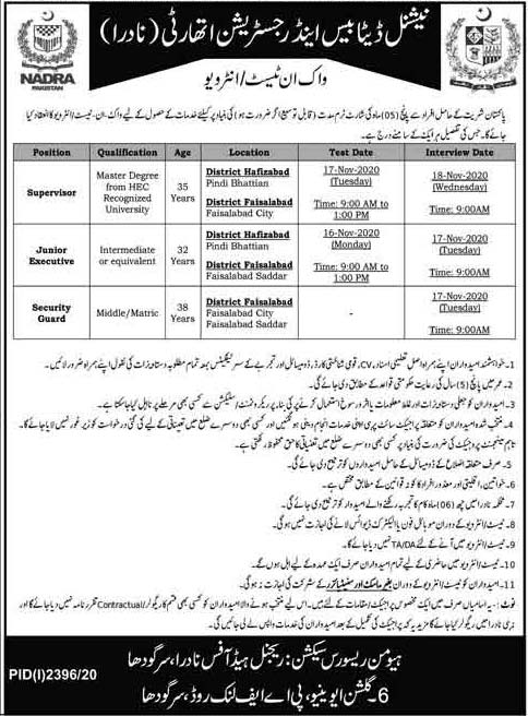 نیشنل ڈیٹا بیس اینڈ رجسٹریشن اتھارٹی نادرا کی طرف سے نوکریوں کا اعلان کر دیا گیا ہے