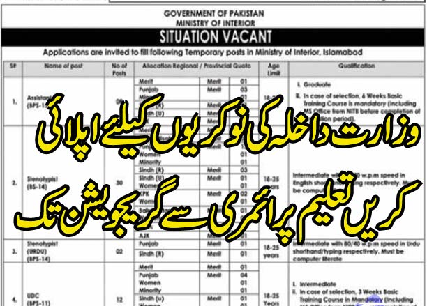 وزارت داخلہ کی طرف سے 67 نوکریوں کا اعلان کر دیا گیا ہے سرکاری نوکری تلاش کرنے والے امیدوار اپلائی کریں