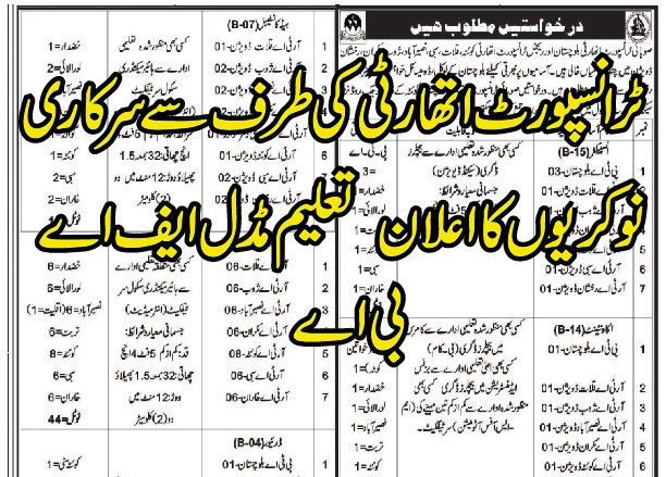 ٹرانسپورٹ اتھارٹی کی نوکریوں کےلئے اپلائی کرنے والے امیدوار اپنی سی وی ضروری کاغزات کے ساتھ اشتہار پر دئیے گے ایڈرس پر بھیج دیں