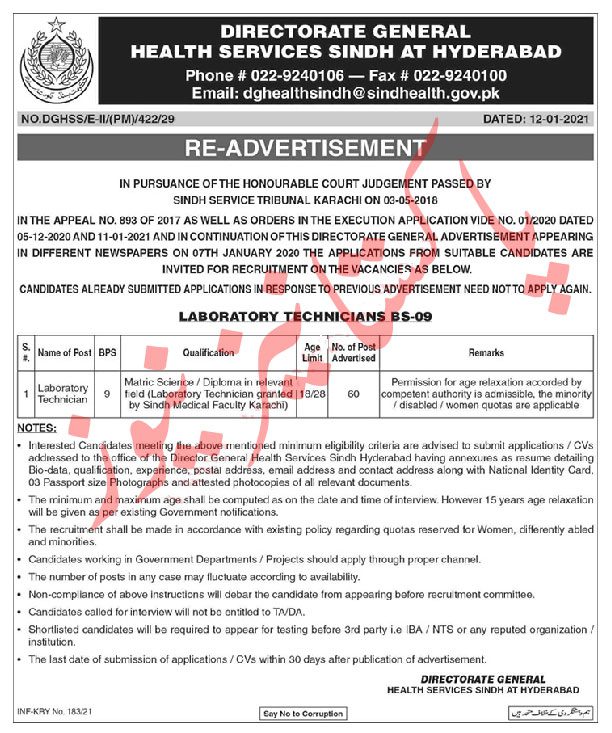 ڈریکٹر جنرل ہیلتھ سروس سندھ کی طرف سے نوکریاں آ گئی ہیں