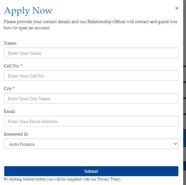 آن لائن اس فارم کو پر کریں اور جمع کروایں ۲۴ گھنٹے میں بنک کا نمائندہ آپ سے بات کرے گا اور آپ سے تفصیل سے بات کرے گا