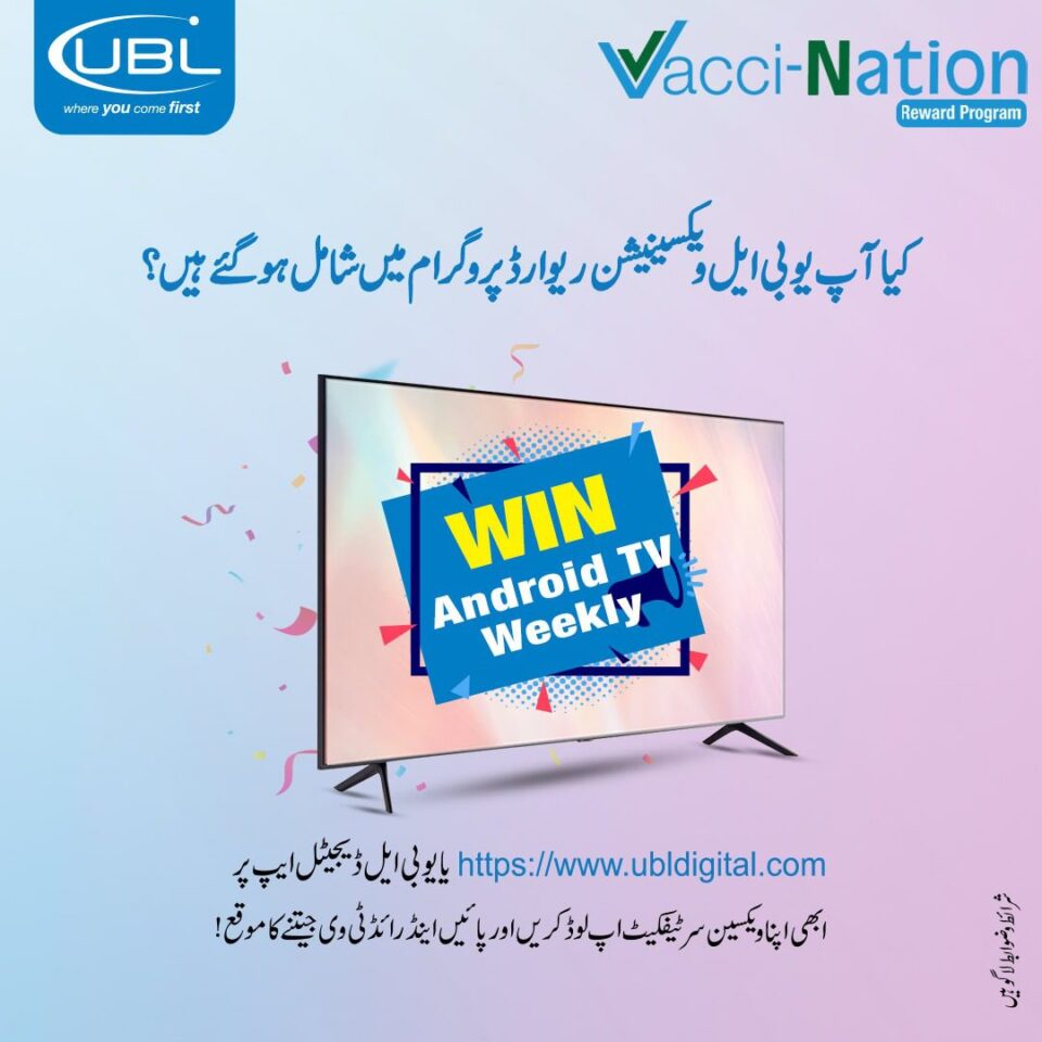 یونائٹِڈ بنک لِمٹِڈ کی طرف سے ایک انعامی سکیم کا اعلان کیا گیا ہے وہ تمام پاکستانی شہری جنہوں نے کرونا ویکسین لگوا لی ہے