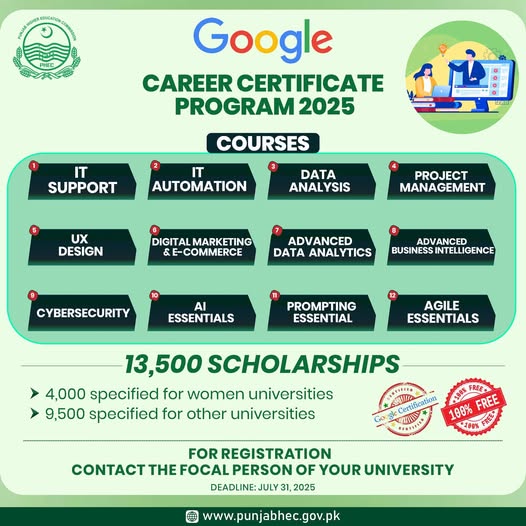 The Google Career Certificates Program 2025 – Pakistan is about more than training. It’s a movement to equip Pakistan’s youth with the skills, confidence, and credentials to thrive in the international digital economy.
