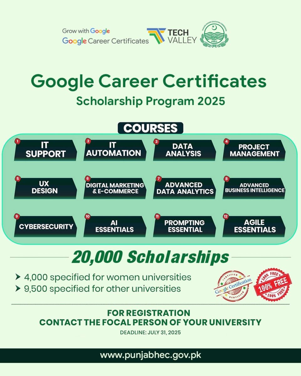 In a significant step towards revolutionizing the digital education ecosystem of Pakistan, the Google Career Certificates Program 2025 has been launched in partnership with Tech Valley Pakistan and the Punjab Higher Education Commission (PHEC). The initiative is a game-simplifier that seeks to empower thousands of students and professionals from all over the country with globally sought-after digital skills — absolutely at no cost.