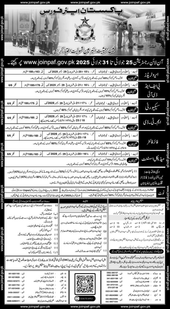 Online registration is now open from 25th July to 31st July 2025. Interested applicants can apply online through the official PAF website: