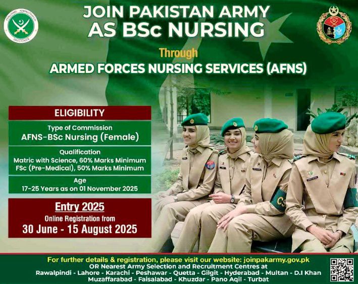 Are you a young ambitious female student seeking to serve your nation while developing a professional career in nursing? The Pakistan Army officially announced BSc Nursing Jobs 2025 through Armed Forces Nursing Services (AFNS). It is a golden chance for dedicated individuals to join one of the most honored organizations in Pakistan.